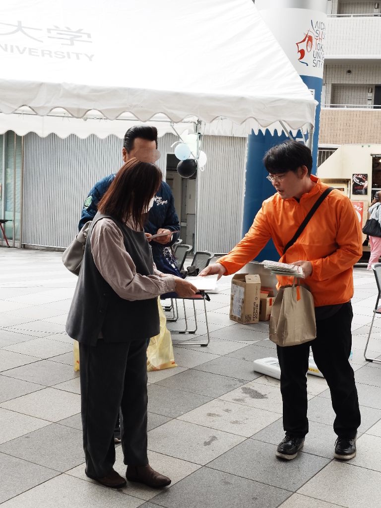 薬乱防止活動 2025.11.7 先月の名古屋葵大学での活動に続き、愛知淑徳大学と中京大学の大学祭にて 名古屋市環境薬務課の方々と合同で、薬物乱用防止活動を行いました。 学生さんをはじめ、大学祭に遊びに来ていた皆様に、オーバードーズについての啓発資料を配布しました。 令和7年11月2日(土)愛知淑徳大学 令和7年11月3日(日)中京大学